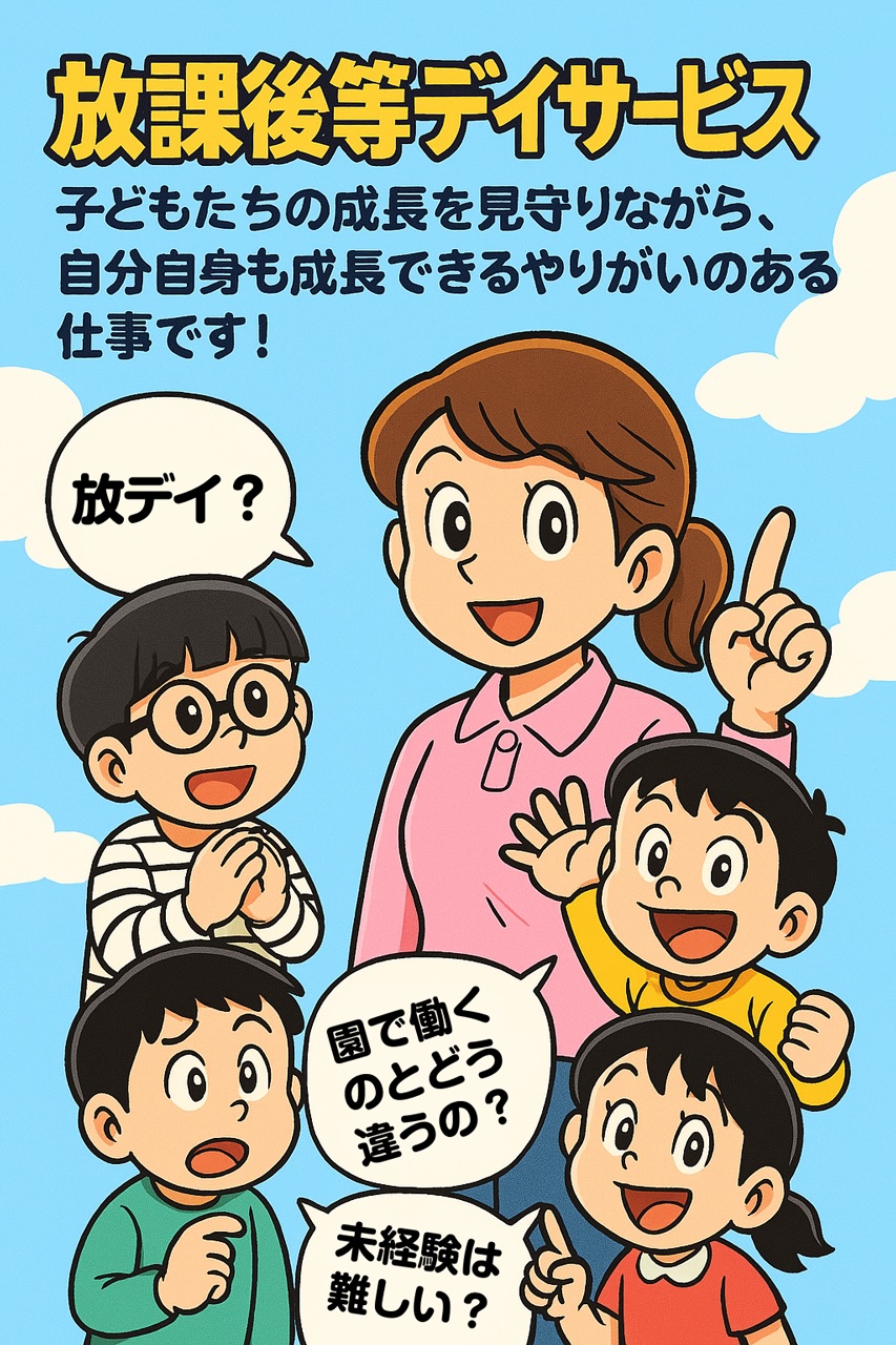 などなど、まだ制度ができてから10年程度ということもあり、どんなことをしている施設なのか?仕事内容はどうなってるの?等、放課後等デイサービス(略して「放デイ」)のことがあまり知られていません。
